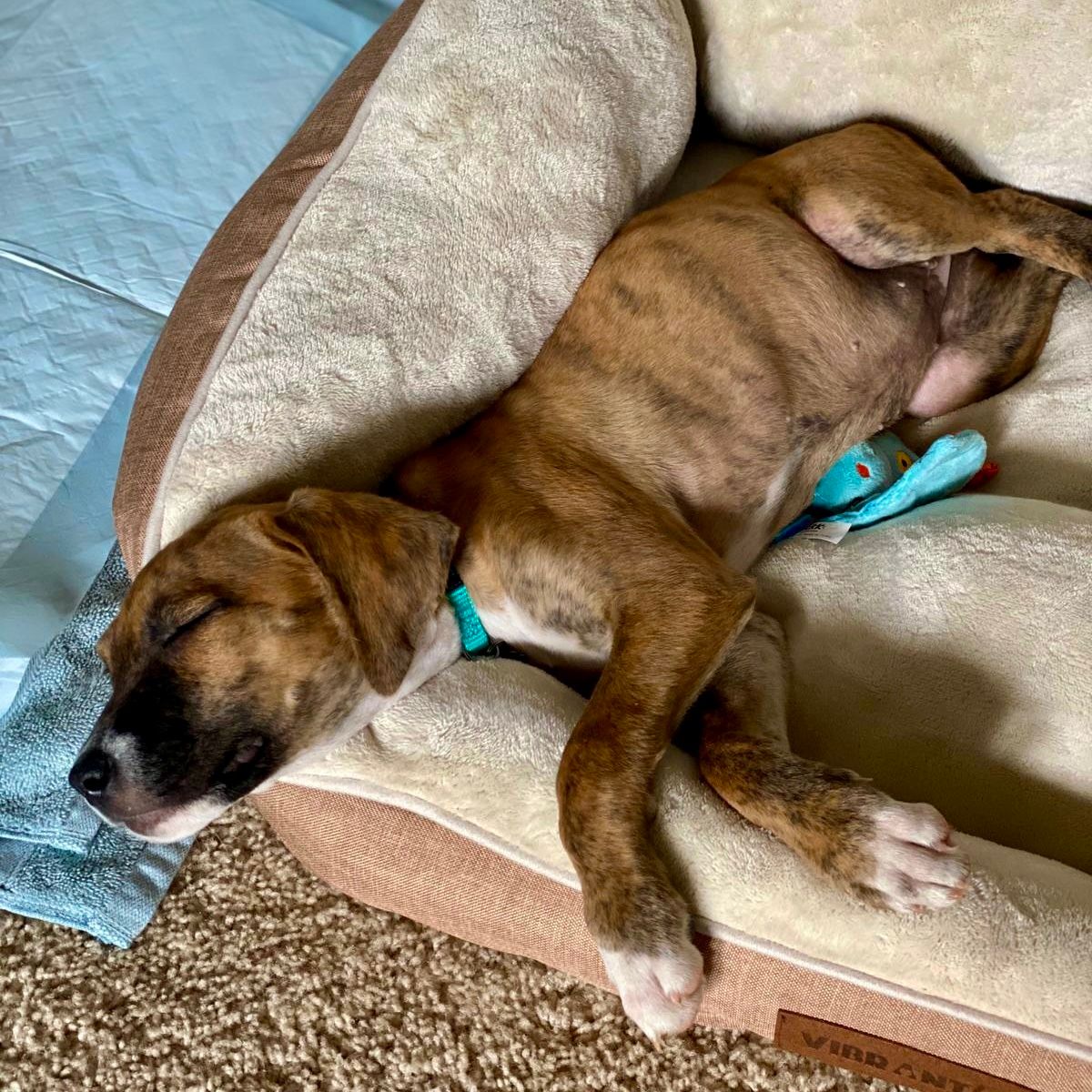 According to her DNA test (yes, we did a DNA test), Lola is half boxer, 3/8th Labrador and 1/8th Great Pyrenees. Those tests aren’t always perfectly accurate, but I think this one nailed it. She’s got the brindle of a boxer, the face and disposition of a lab, and the remarkably soft fur of a Great Pyrenees. She’s perfect.